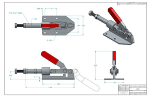 Medium size clamp that locks in extended or retracted position. Overall Height 3.25 In, Overall Length 5.49 In, Plunger Travel 1.25 In.